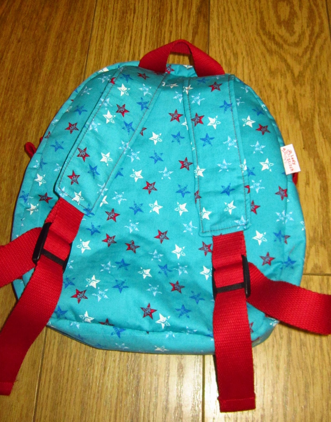 In Kapellen vond ik heel mooie sterrenstof en ik besloot (nog eens) een rugzakje te maken. Even twijfelde ik want ze hadden dezelfde sterrenstof ook in joggingkwaliteit. Maar omdat ik niet echt veel ervaring heb met joggingstof en babykleedjes speelde ik toch maar op safe.
